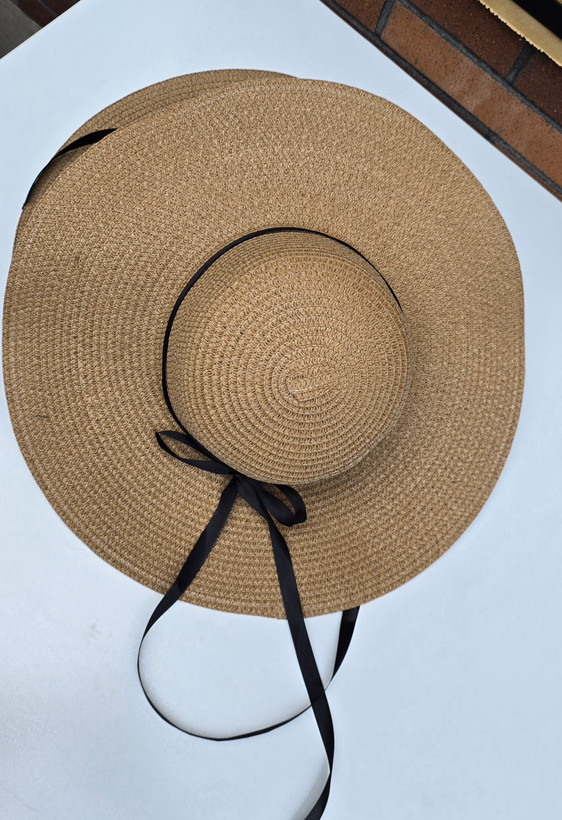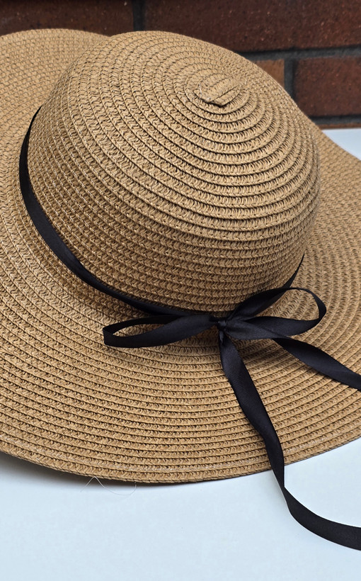 کلاه ساحلی حصیری لبه بلند کاراملی